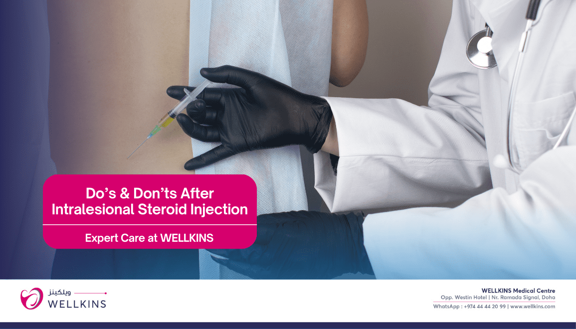 Intralesional steroid injections are a commonly used, evidence-based intervention in orthopedic practice for managing a variety of inflammatory and degenerative musculoskeletal conditions. At Wellkins Medical Centre, we often utilize this precision based approach to bypass the digestive system and deliver potent anti inflammatory relief exactly where the damage is. When used judiciously and combined with appropriate rehabilitation, they can provide significant symptom relief, improve function, and facilitate a faster return to daily activities. This blog outlines the indications, post-procedure care, do’s and don’ts, onset and duration of effect, number of sessions, rehabilitation phases and return-to activity guidelines from an orthopedic surgeon’s perspective.