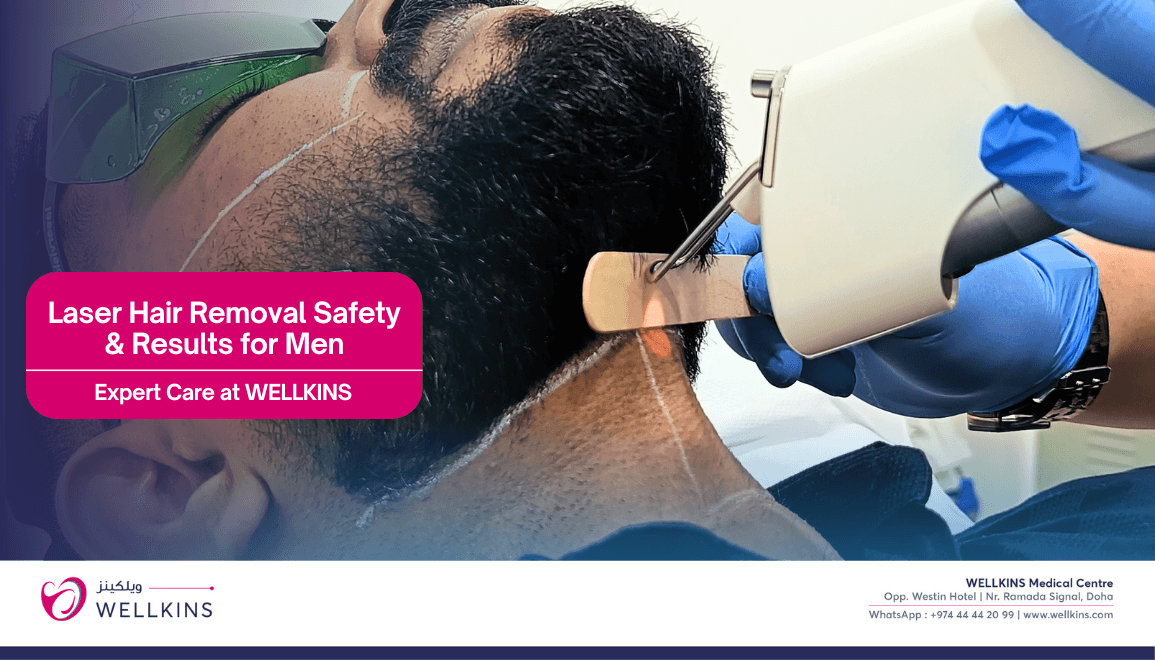 This is an important question in the context of Qatar, where the patient population spans a wide range of skin tones from South Asian, Arab, African and other backgrounds. Older generation lasers posed genuine risks for darker skin tones including burns and pigmentation changes. Modern systems, including the Nd:YAG laser, have been specifically developed for safe and effective treatment across all skin types. At Wellkins, our dermatologist selects the appropriate laser technology and settings based on each individual patient’s skin tone and hair characteristics, making the treatment accessible and safe for the full diversity of men living in Qatar.
