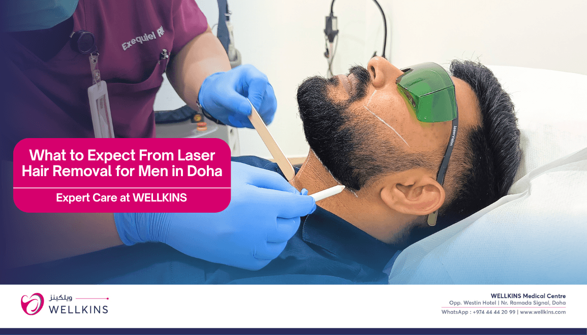 At Wellkins Medical Centre, Dr. Steffy Mariyam Reji and the dermatology team provide comprehensive laser hair removal consultations and treatments tailored to male patients. From the initial skin assessment through to the final session, every step is managed by a qualified specialist using technology appropriate for Qatar’s diverse patient population.