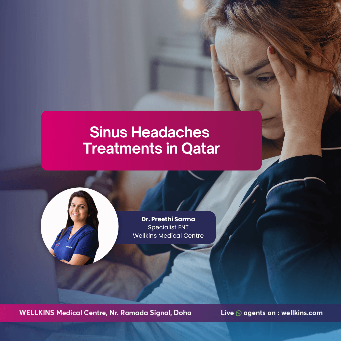 Accurate diagnosis of sinus headache in Qatar requires a structured clinical assessment that goes beyond a brief examination and a prescription. At Wellkins, Dr. Preethi Sarma uses a systematic approach to identify the true source of each patient’s pain before any treatment is initiated.